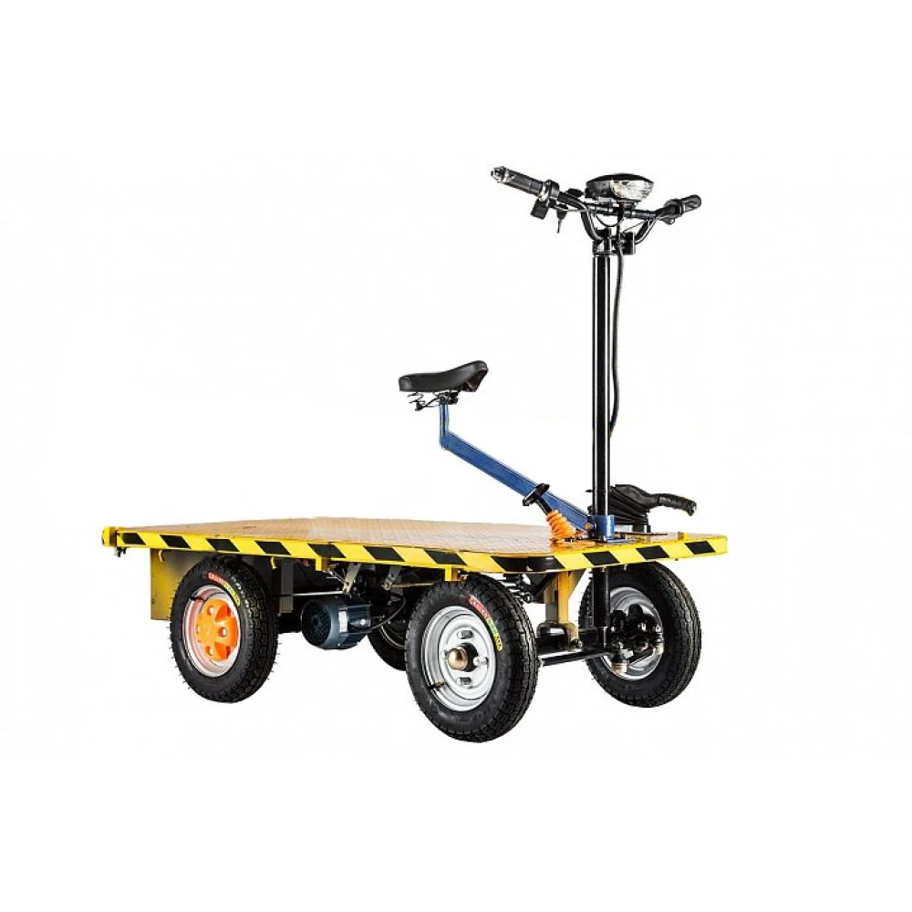 При мощности двигателя 800 ВТ техника способна развивать скорость до 25 км/час. Грузоподъемность электротранспорта составляет 750 кг. Модель оформлена порошковой краской желтого цвета, длительное время не теряющей первоначальные характеристики. Тормозная системы – качественная, барабанная. Эксплуатационные характеристики позволяют пользоваться техникой при температурных параметрах -10С до +50С. Техника изготовлена из прочной стальной рамы, которая неоднократно подтвердила максимальные параметры надежности. Для заказа товара оптом и в розницу предлагаем связаться с менеджером интернет-магазина в телефонном или онлайн-режиме.