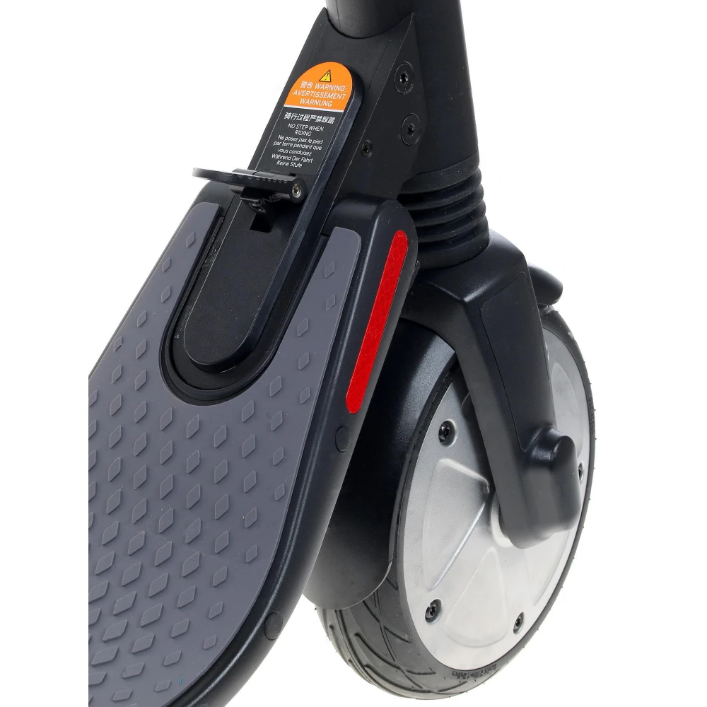 Вес электросамоката составляет всего 12,5 кг, что является несомненным преимуществом – его будет не только легко транспортировать, но данный показатель также улучшает маневренность при управлении транспортным средством.