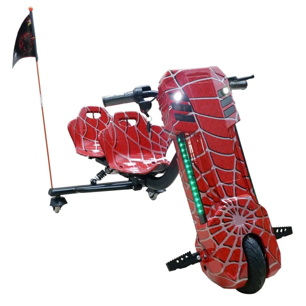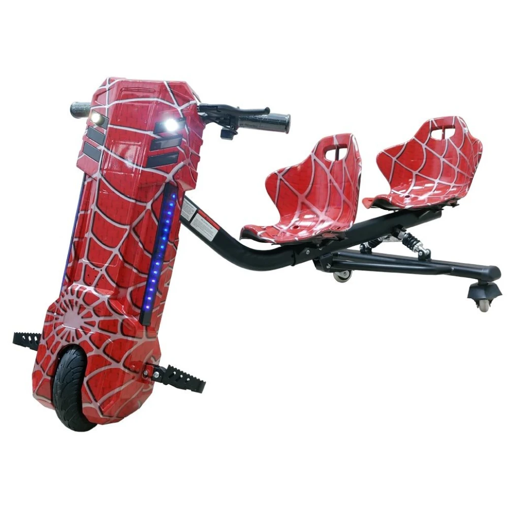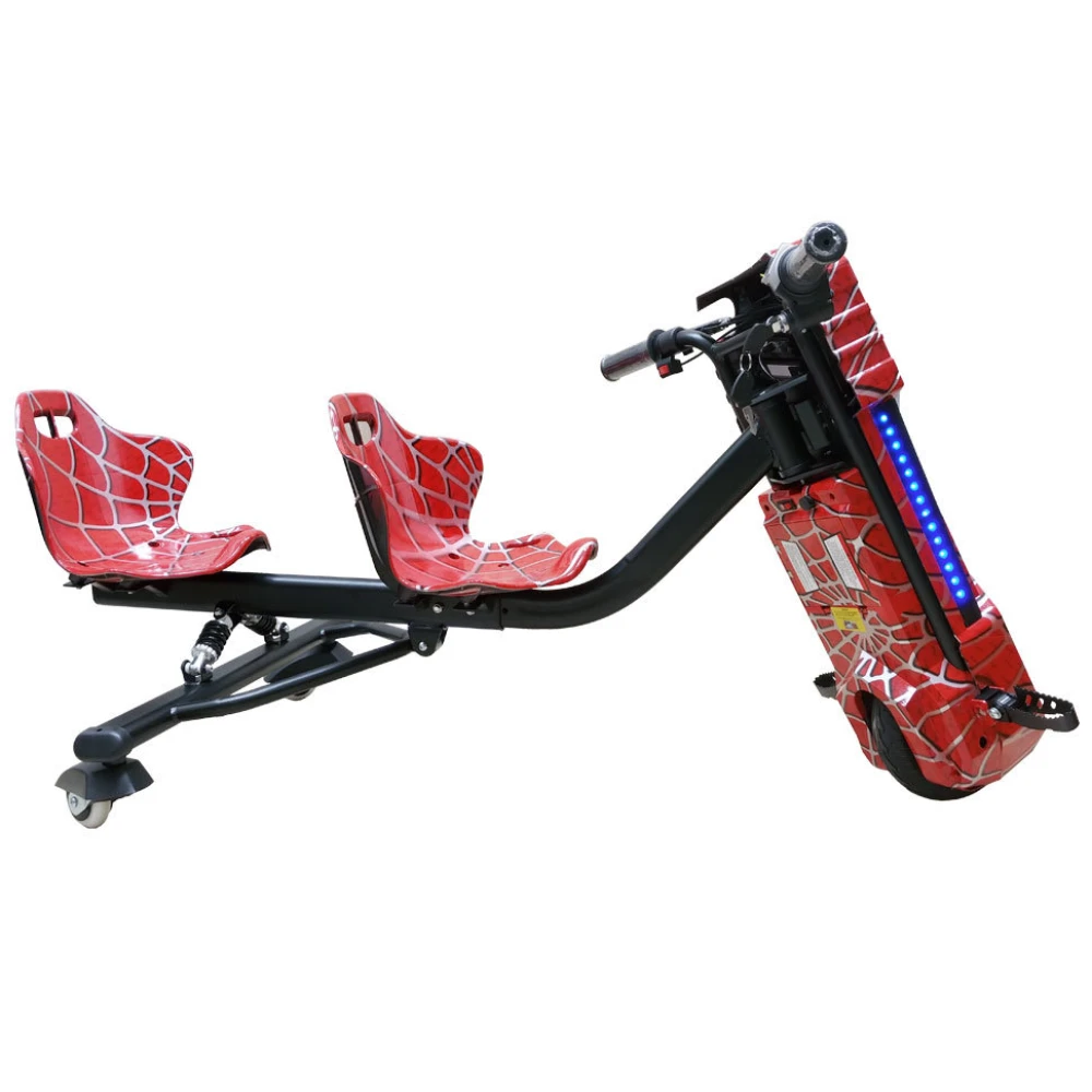 Визуально дрифтер выглядит круто, напоминает спортивную модель. Обтекаемые сиденья имеют удобную конфигурацию, снимают нагрузку на позвоночник, не допускают ощущение усталости. 8-дюймовые шоссейные колеса и жесткая система амортизации делают езду накатистой и плавной по неровностям. Технические характеристики практически исключают вибрации.