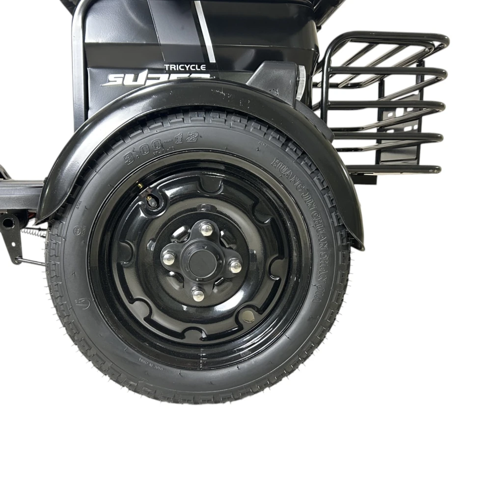 Yasmand R12 — трёхколёсный электротрицикл с задним приводом и мотором 1200 Вт. Он развивает скорость до 50 км/ч и обеспечивает комфортное передвижение по городу и на ровных загородных дорогах.