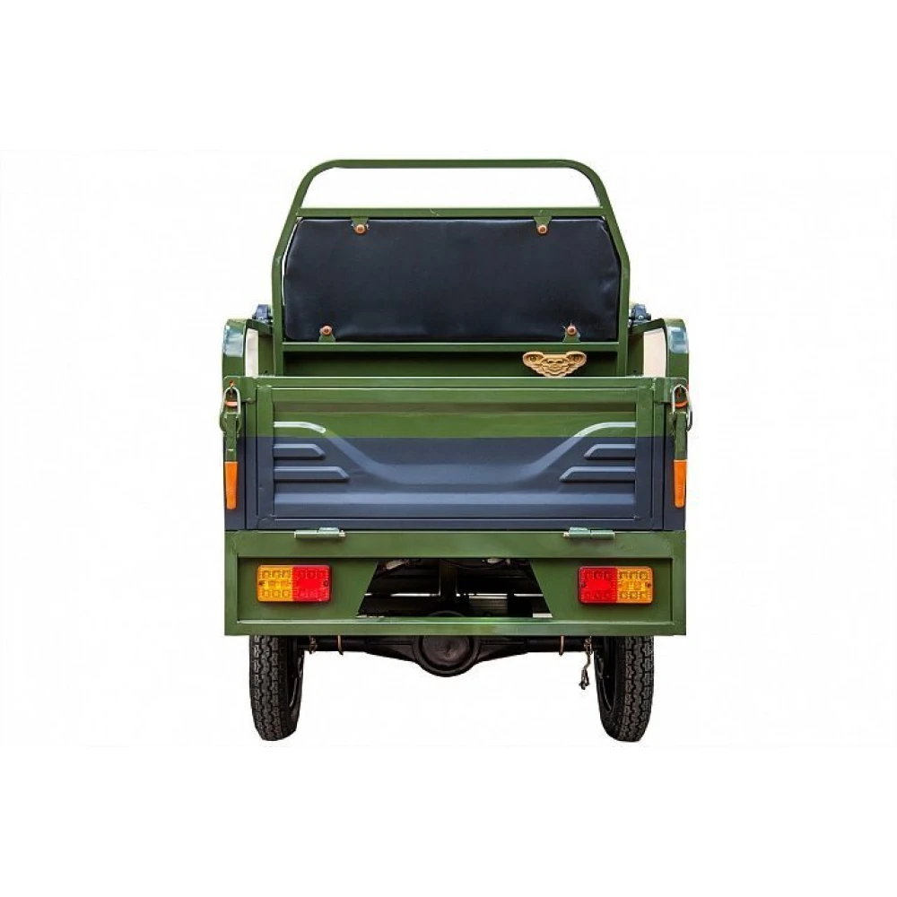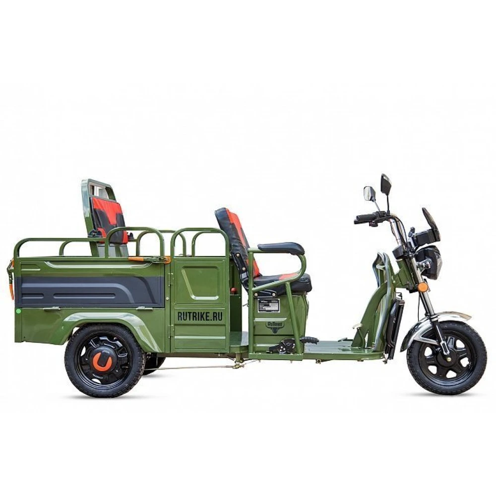 Груовой электротрицикл Rutrike Вояж-П 1200 Трансформер 60В 80 Вт  в зеленом цветовом оттенке - техника, предназначенная для лиц с активной жизненной позицией, жителей сельских районов, для которых отдых на свежем воздухе находится на первом месте. Электротрицикл грузоподъемностью до 400кг идеально подходит для вылазок с друзьями, езды на рыбалку и другие мероприятия на природе.