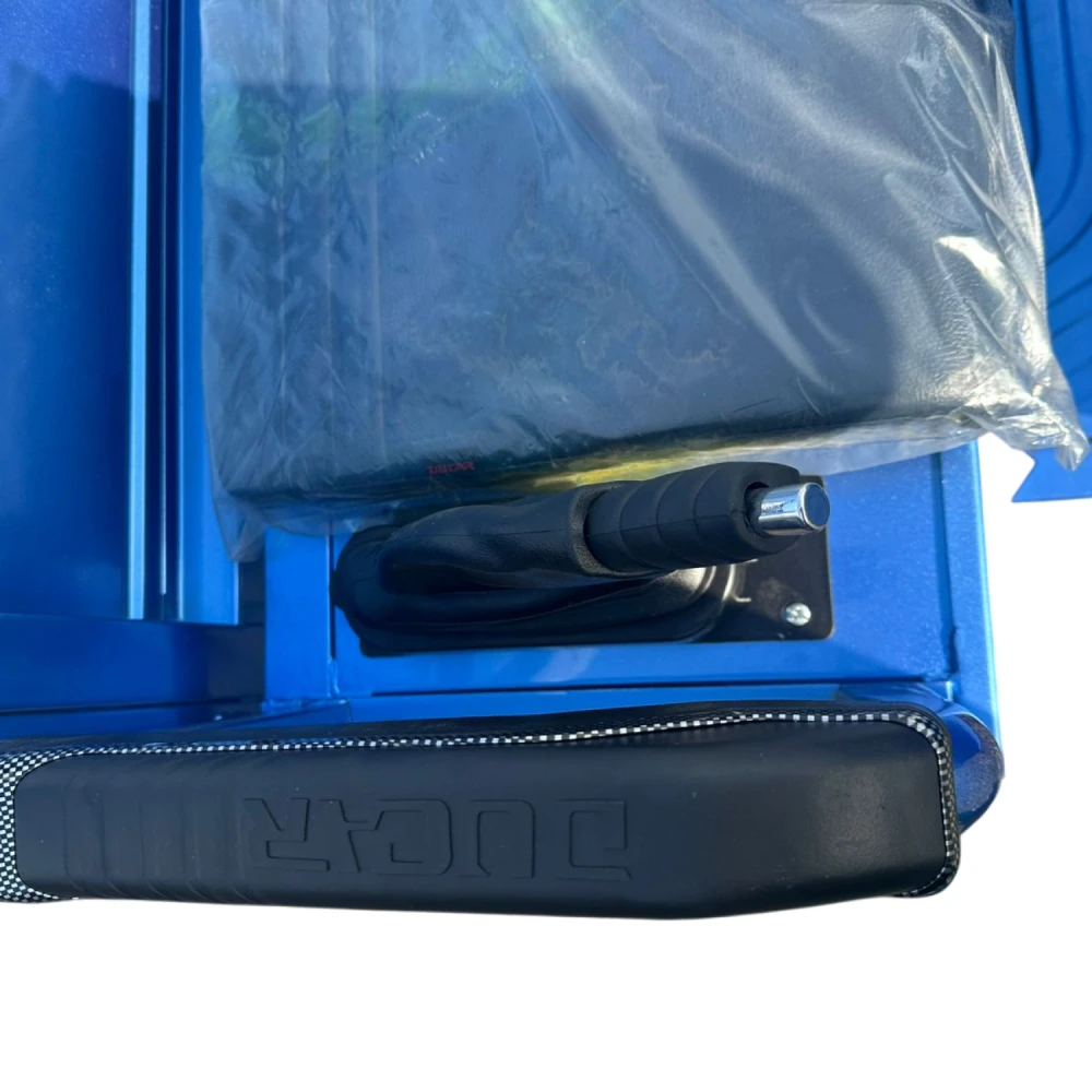 Металлический корпус обеспечивает прочность при весе всего 201 кг — лучшее соотношение веса и надёжности в линейке. Встроенный дисплей и бортовой компьютер помогают контролировать состояние техники. Барабанные тормоза просты в обслуживании и надёжны при правильной эксплуатации.