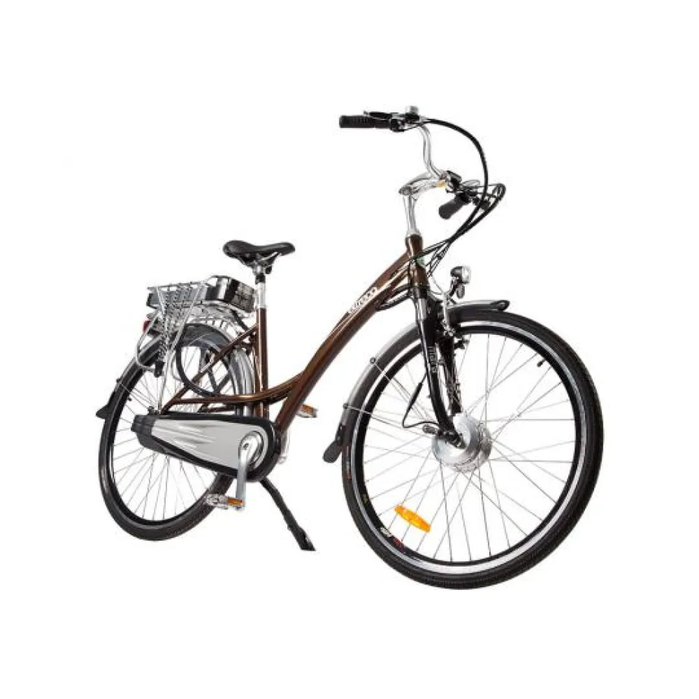 Электровелосипед Eltreco Grand 700 C оснащен литий-ионным аккумулятором, емкостью 10 А*ч, он легко снимается, пополнить заряд батареи можно за 6 часов, подключив ее к сети через зарядное устройство. Полного заряда батареи хватает на 70 км пути. Агрегат оборудован мотор-колесом мощностью 250 Вт, редукторный двигатель придает ровное ускорение и имеет экономное энергопотребление. Максимальная скорость, развиваемая транспортным средством, составляет 30 км/ч.
