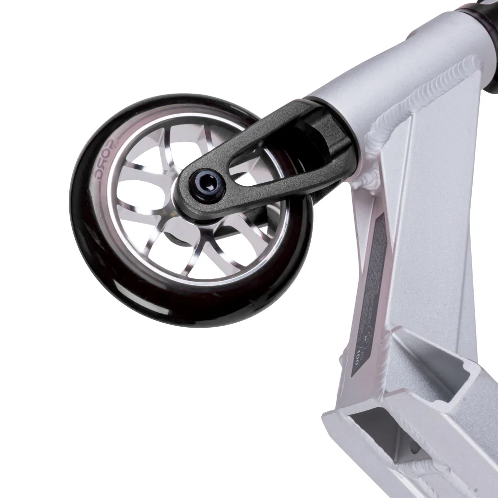 Дека самоката Tech Team Drop 2.0 выполнена из прочного алюминия, предоставляя надежную платформу для райдера. Легкая конструкция деки обеспечивает комфорт и маневренность во время катания, что особенно важно для выполнения трюков.