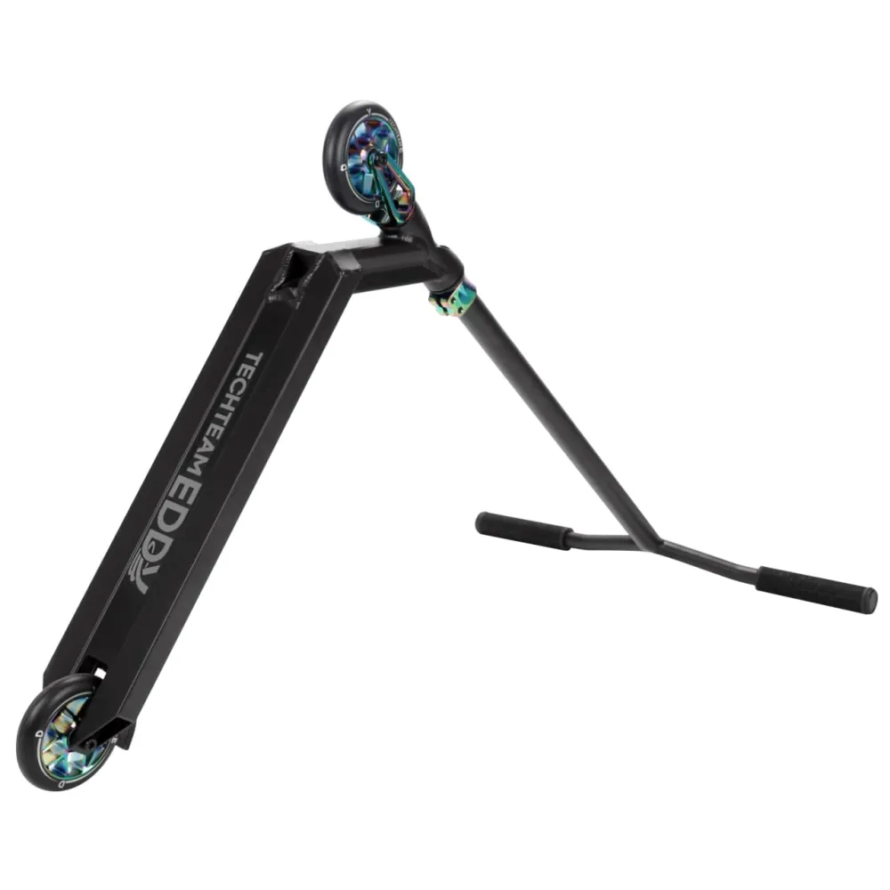 Eddy - Трюковой самокат от компании Techteam модельного ряда (2021) Это самый легкий самокат во всей линейке и идеально подходящий для райдеров с ростом от 160 до 177 см. Самокат из алюминия, с полиуретановыми колесами жесткости и дисками из 88-го алюминия класса А. У него классический и хорошо зарекомендовавший себя руль в форме крыльев чайки. Габариты деки, довольно стандартны, и имеют полезную площадь в 39 см.
